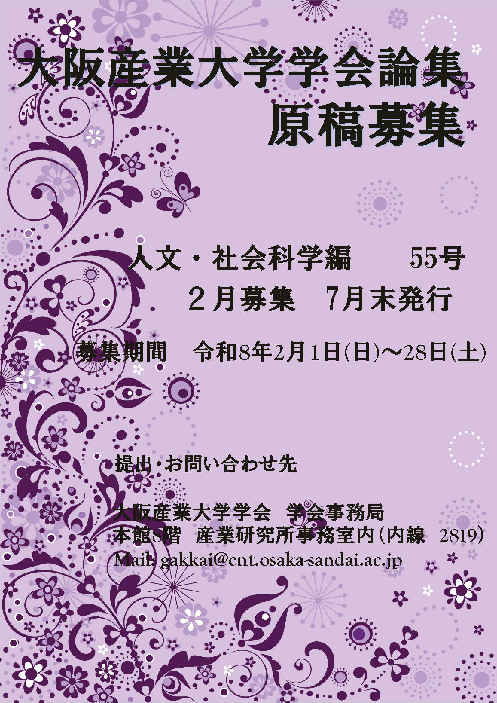 大阪産業大学学会論集 原稿募集のお知らせ(2026.2月募集)